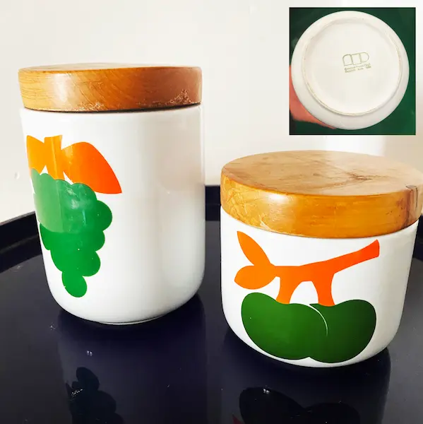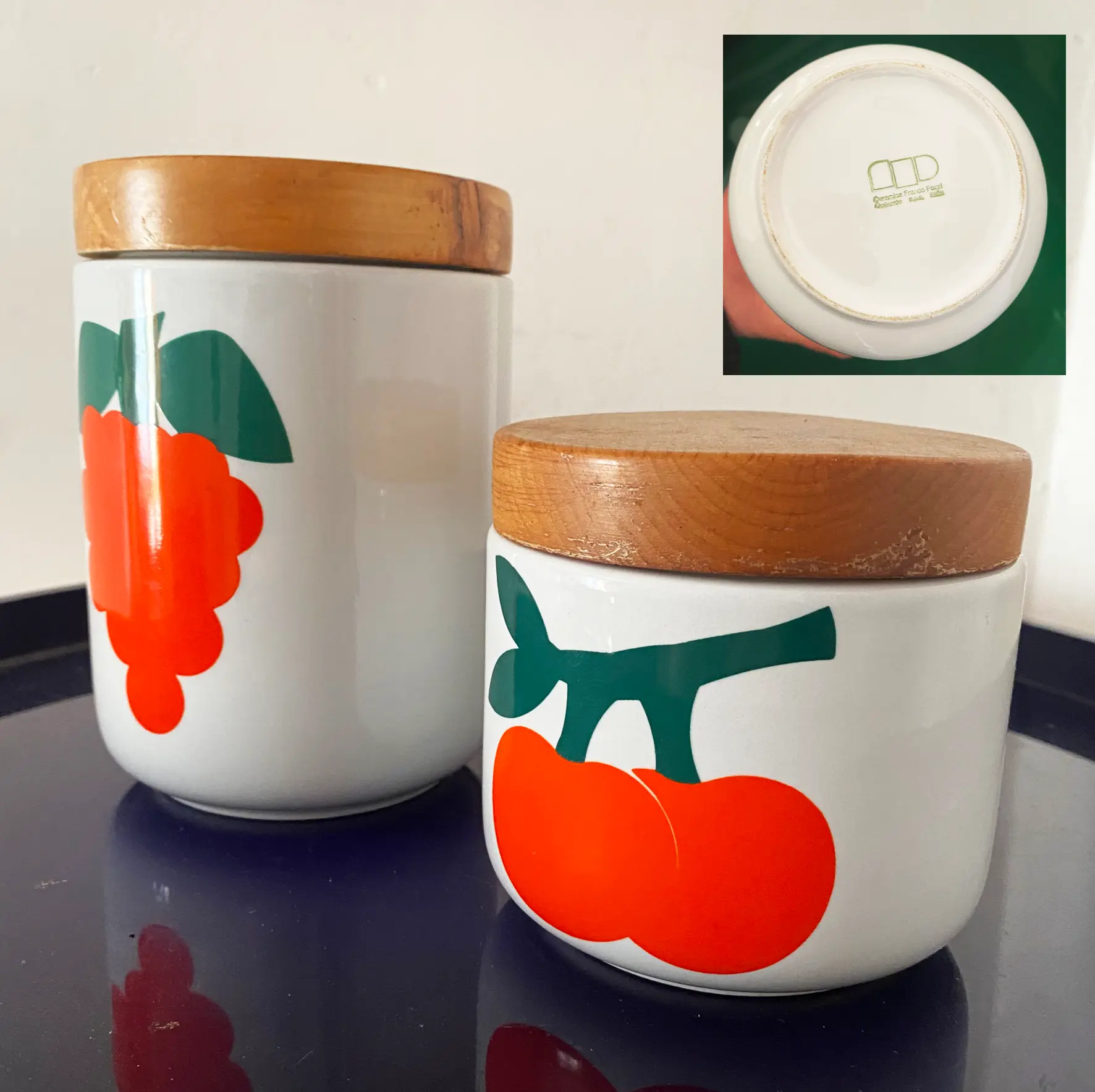 Pair de pots iconiques de Franco Pozzi pour Gallarate, circa 1965. Design XXe impeccable, avec caoutchouc d’origine. H 15,5 et 5,5 cm. Pièces vintage rares.