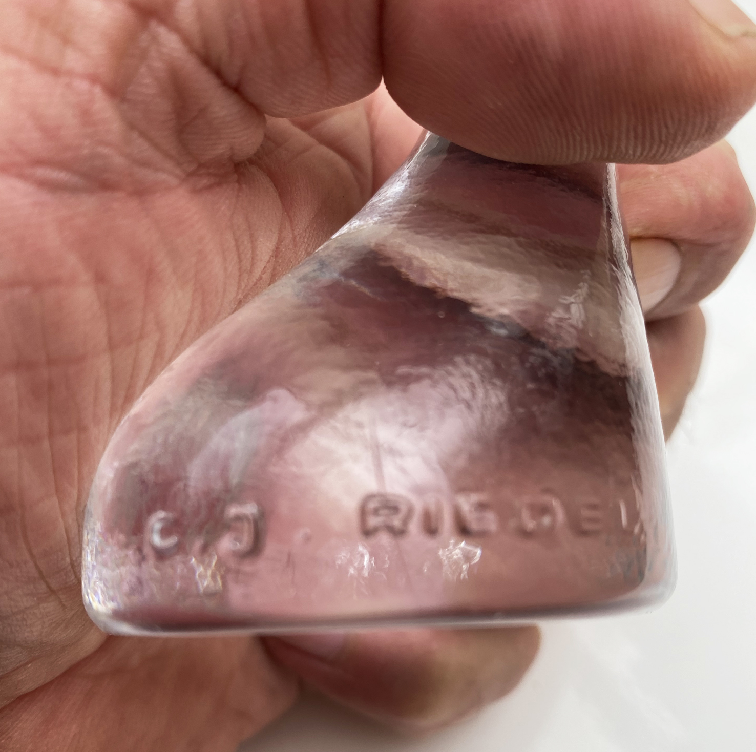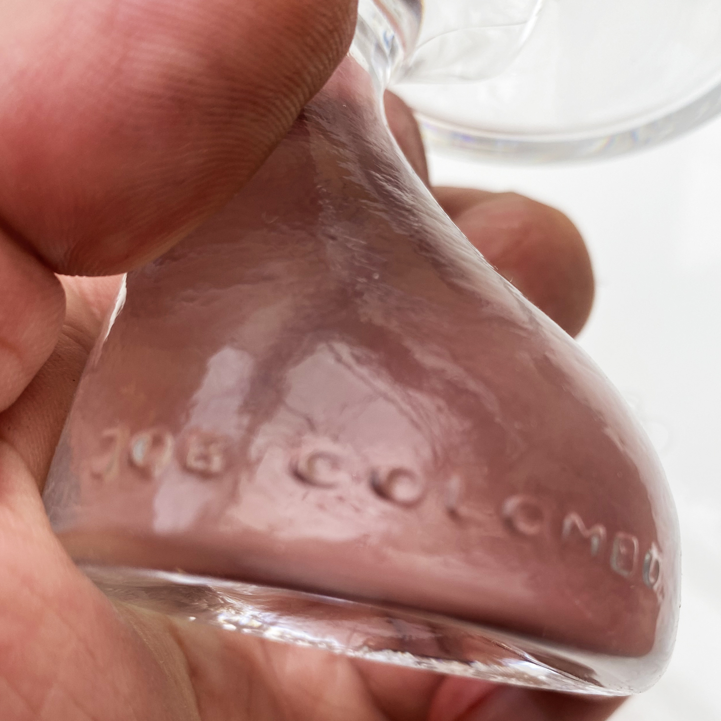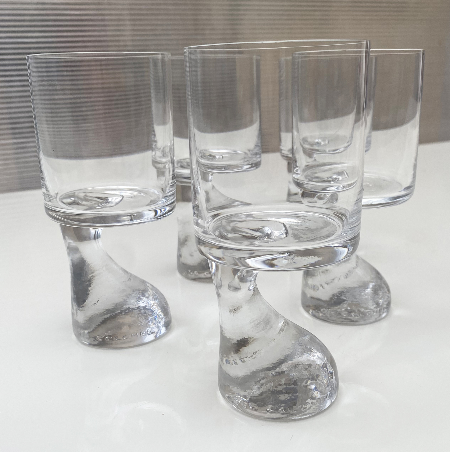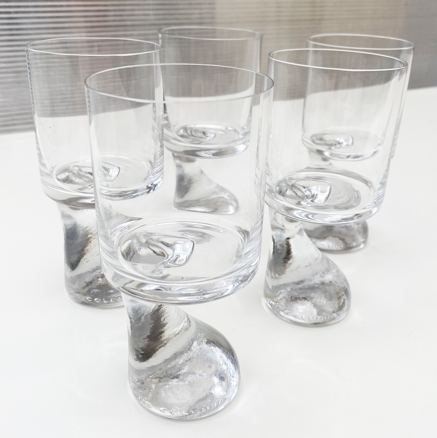 5 verres Asimmetrico, conçu par Joe Colombo en 1964 et produit depuis 1968 par la société autrichienne Riedel de Kufstein en cristal fin.La première version de Colombo, appelée « Smoke », conçue pour Arnolfo di Cambio, a un pied plus court que l' »Asimmetrico », avec une base aplatie.Joe Colombo a ensuite conçu l’Asimmetrico, conçu également pour pouvoir tenir son verre et sa cigarette dans la même main Fabriqués en cristal soufflé à la bouche à la main, par Claus Joseph Riedel en Autriche. La base des verres est signée C.J. Riedel. d’un coté et Joe Colombo de l’autre. Dimensions des verres : Hauteur : 15,5 cm Parfait état