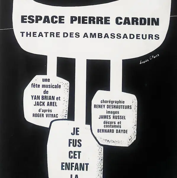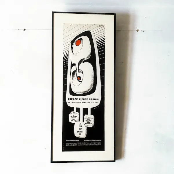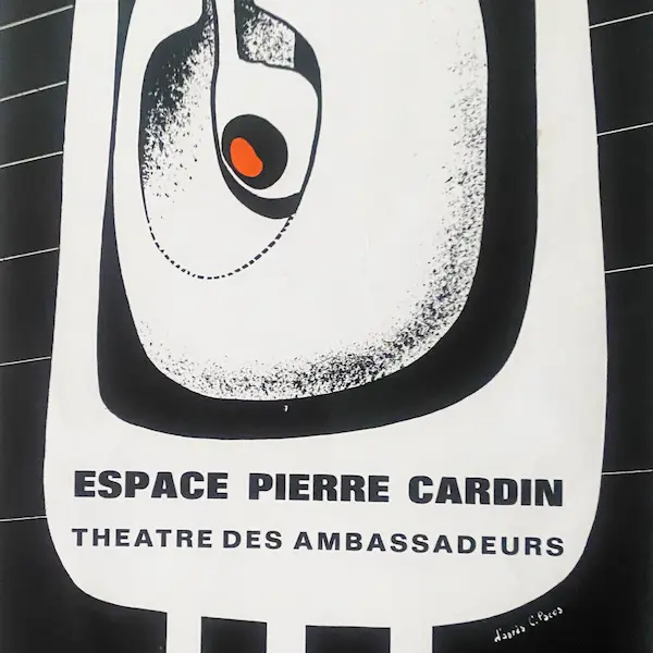 Affiche iconique Espace Pierre Cardin (1970) Pièce de collection rare, cette affiche vintage de 20×60 cm encadrée (30×70 cm) présente l’interprétation du célèbre logo de l’Espace Cardin– conçu par François Cante Pacos.