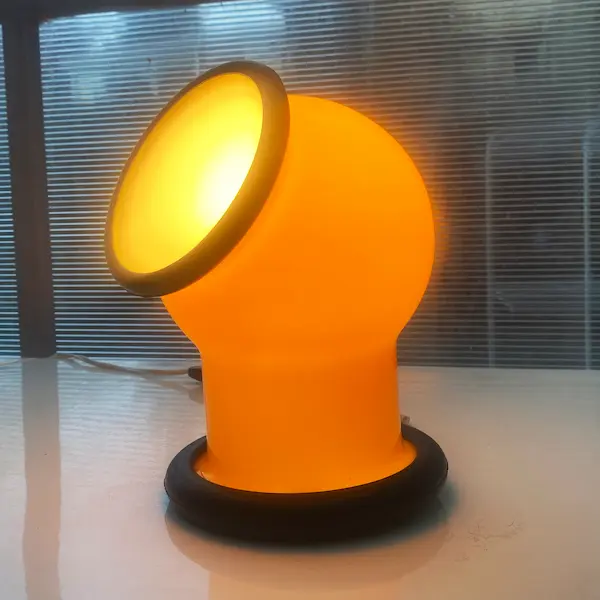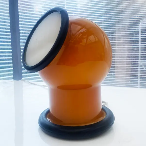 Pièce design scandinave iconique en verre caramel et caoutchouc, style 60s/70s. Parfait état avec étiquettes d’origine.