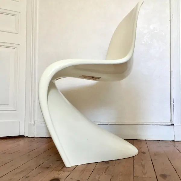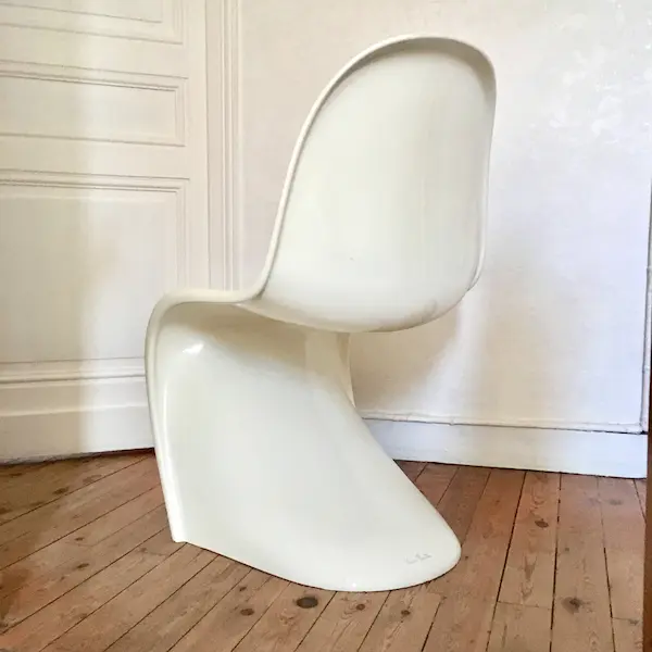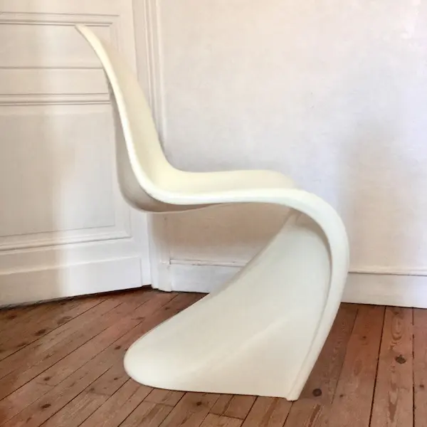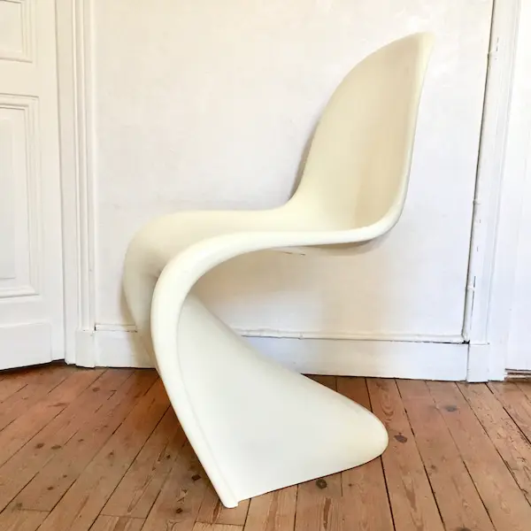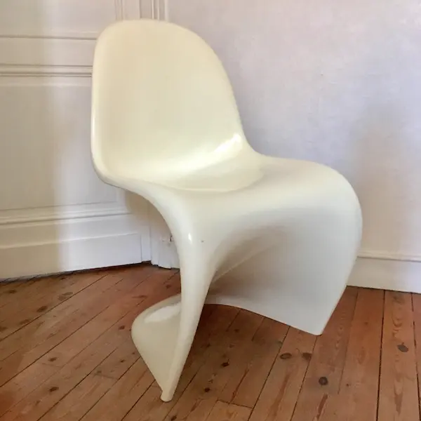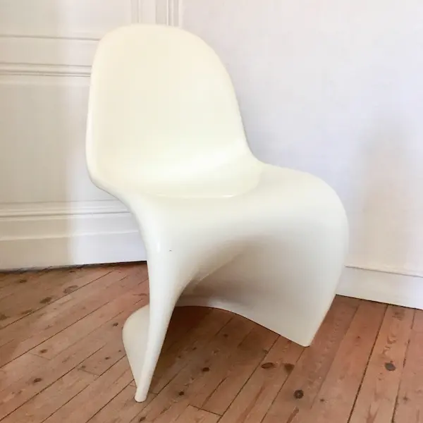 Chaise « Panton Chair » de Verner Panton (édition 1983 Horn/WK). 🤩 Version luxe rare en Baydur, mousse PU rigide laquée. Design iconique 60s/70s, signature et stickers d’origine. Pièce de collection en très bon état, avant l’édition Vitra. 83 x 50 x 60 cm. Ajoutez cette icône du design vintage à votre intérieur !