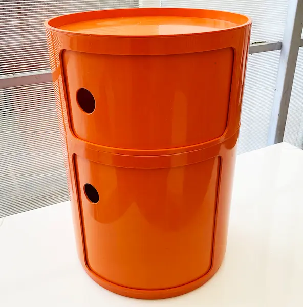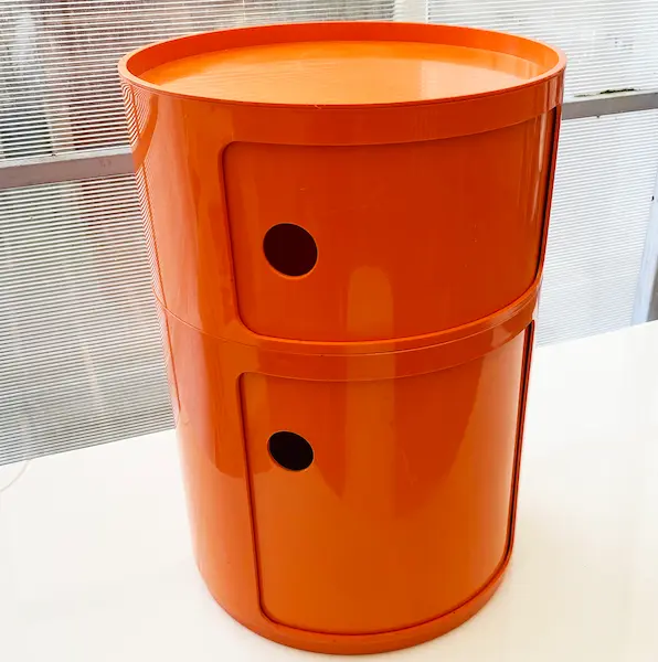 Rare Componibili Kartell (années 70) d’Anna Castelli, jamais réédité dans ces dimensions ! Hauteur 60 cm, diamètre 42 cm.