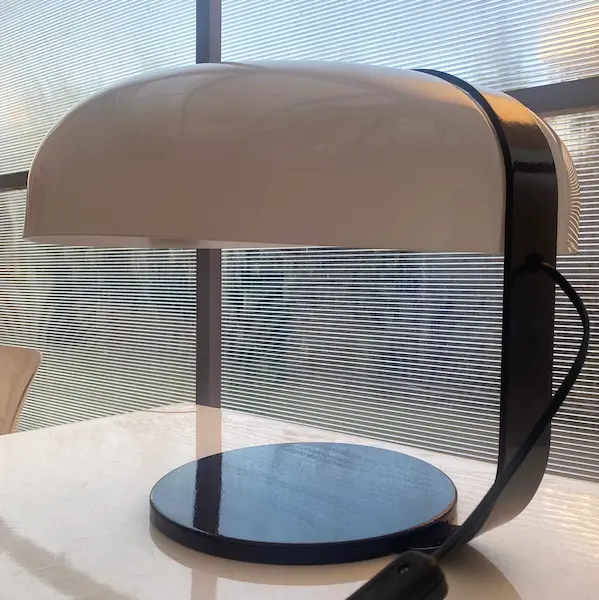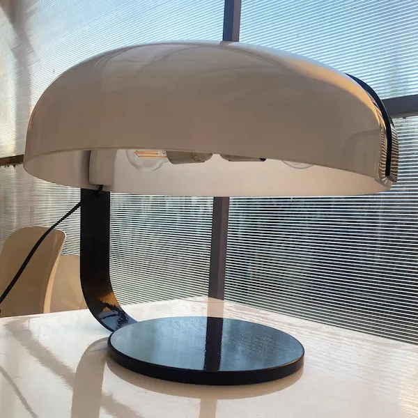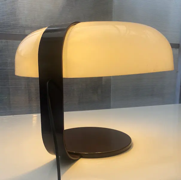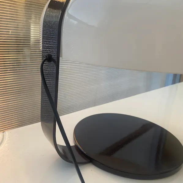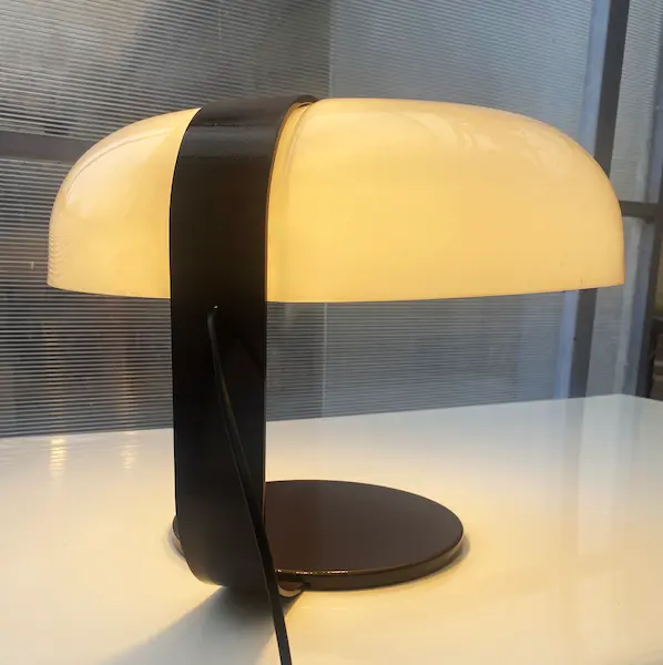 Lampe D476 Rare de Giotto Stoppino (années 60) éditée par Candle. Un incontournable du design italien des années 60/70. Cette pièce iconique en métal laqué marron combine fonte, acier et un épais diffuseur opalin. Parfaite pour les collectionneurs et amateurs de mobilier vintage design.