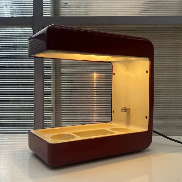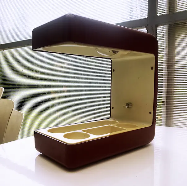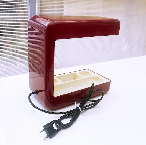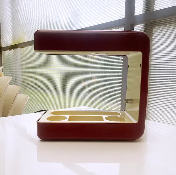 Pièce vintage rare des années 70 en métal laqué rouge bordeaux et plastique ABS crème.