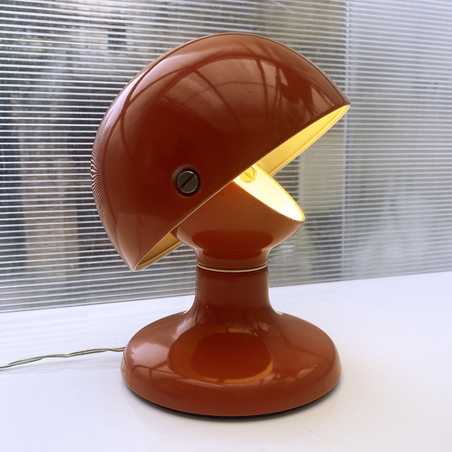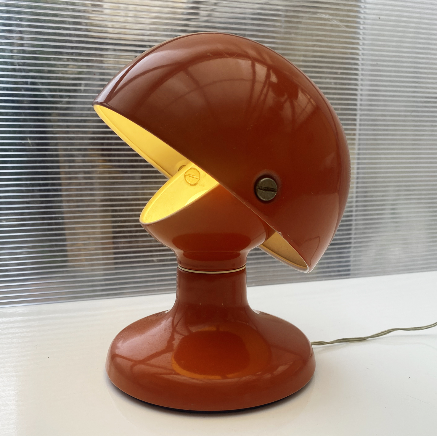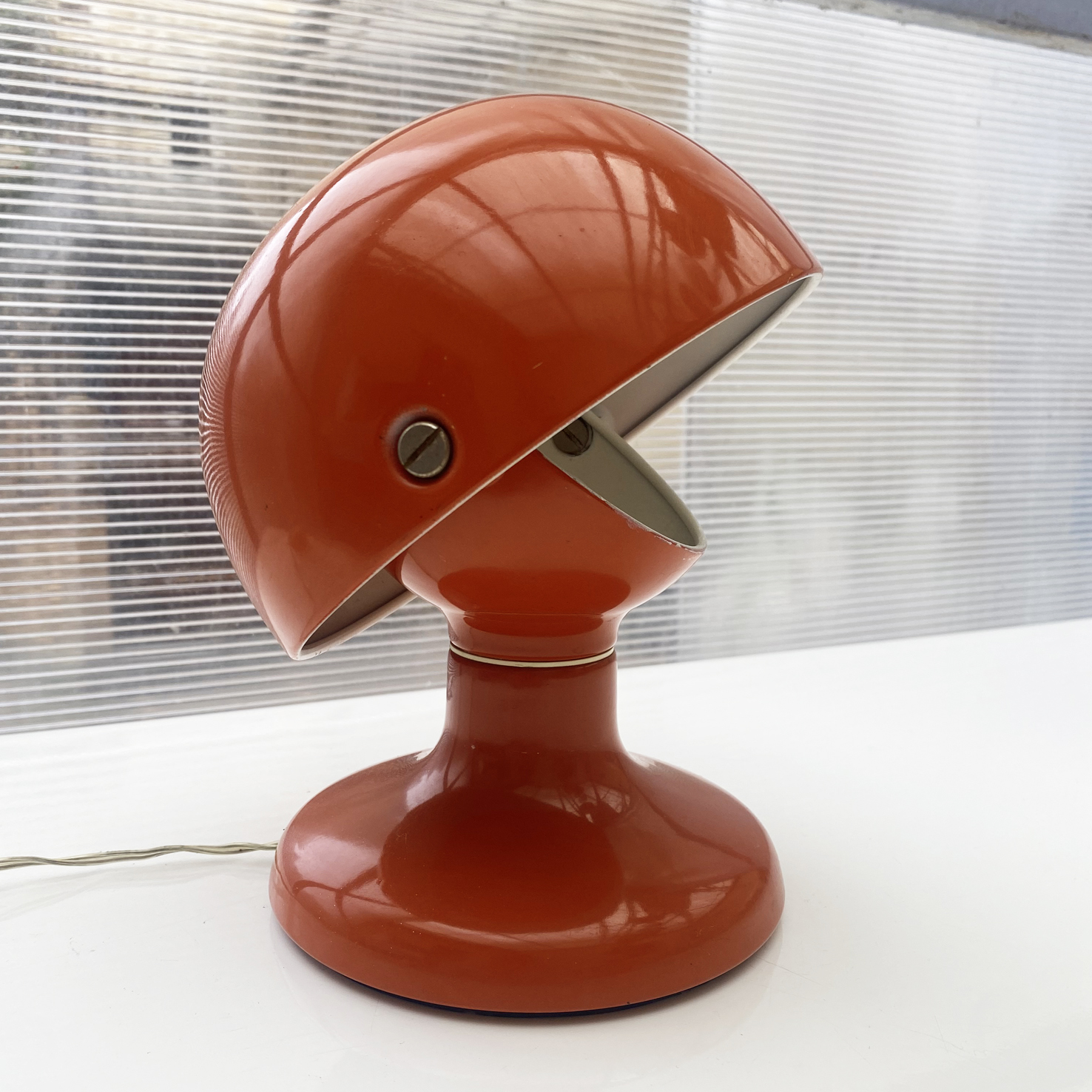 Lampe Jucker de Tobia Scarpa pour Flos en très bon état ,couleur : orange/corail, pas de bosse, rayures quasi inexistantes, présence d’une vieille étiquette avec son prix en Lires, années 60, interrupteur Castiglioni.
