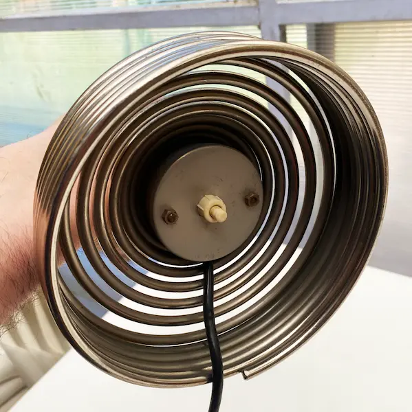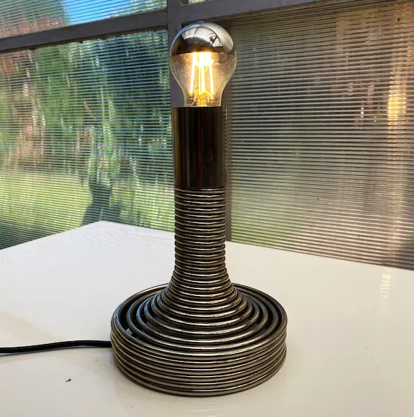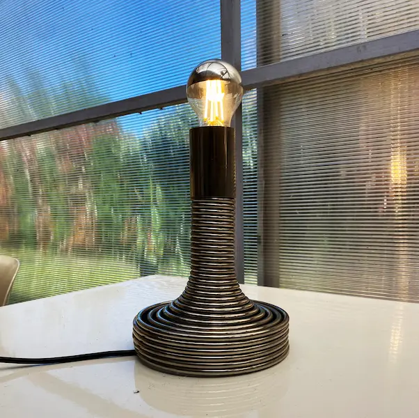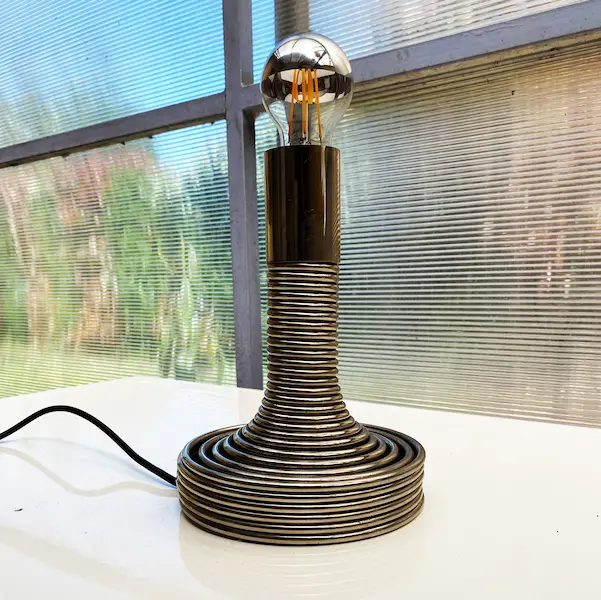 Lampe de table Spirale du designer Angelo Mangiarotti, produite par Candle dans les années 70.