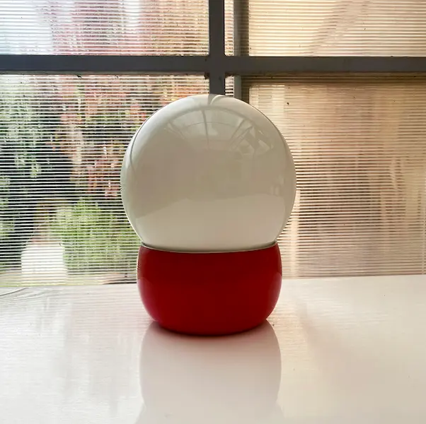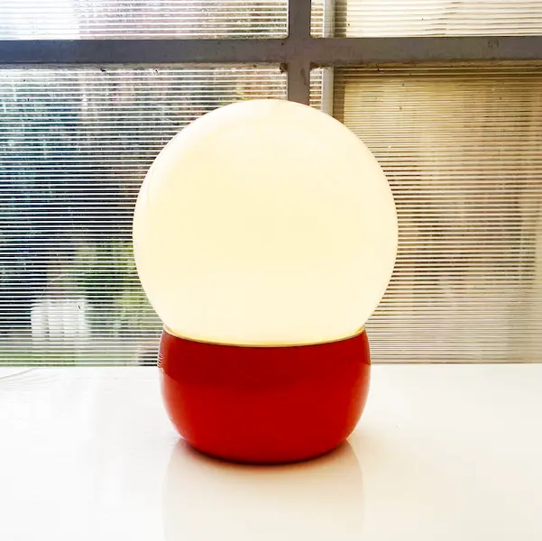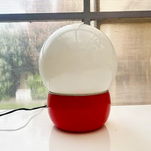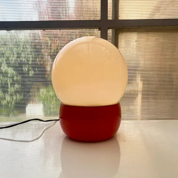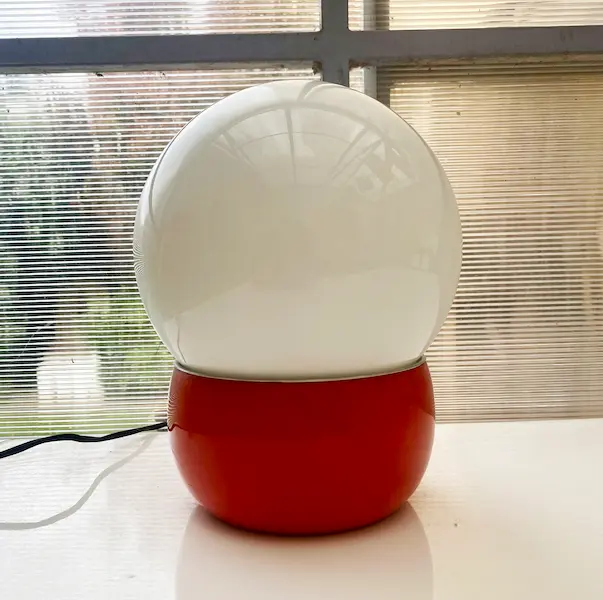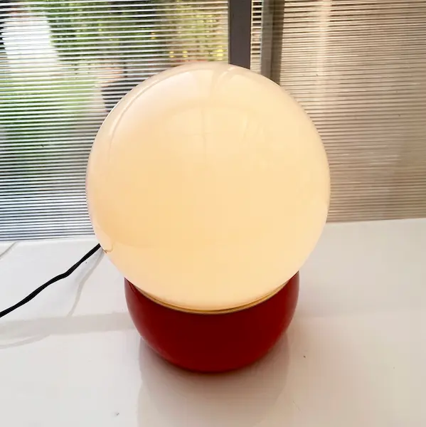 💡 Lampe de table Stilux des années 70. Pièce de design vintage authentique en métal et verre. Lampe italienne de collection en bon état. Hauteur : 28 cm, sphère 20 cm.