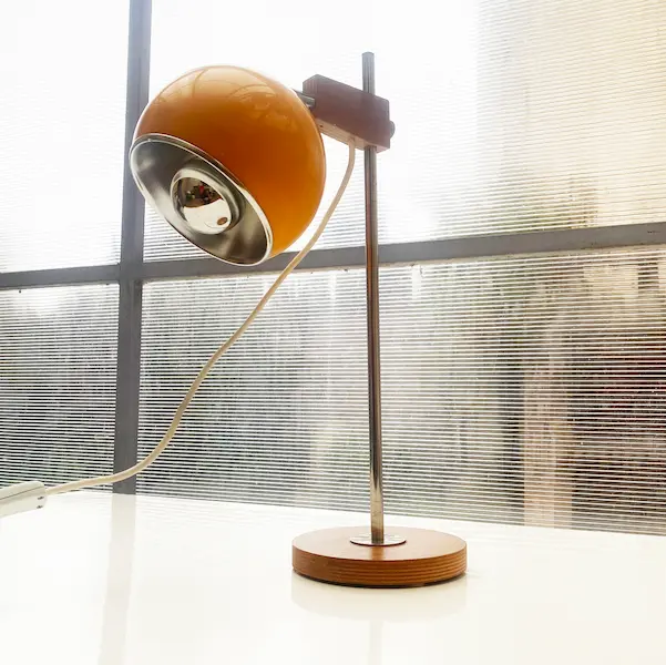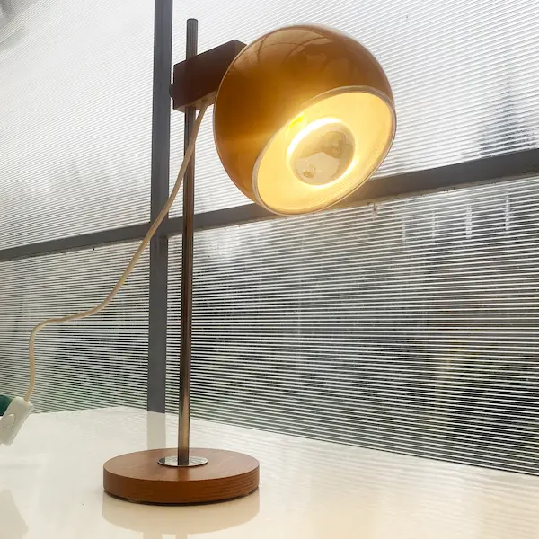 Lampe Temde Space Age Eye Ball iconique 60s/70s. Design original en métal argenté, acier & teck.