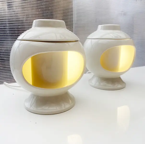Paire de lampes à poser Valencia SC3 par Marcello Cunéo pour Philips Gabbianelli, datant des années 60. État NOS (New Old Stock) ! Ce design emblématique des années 60/70 est doté de l’interrupteur original Castiglioni. Un trésor du mobilier design vintage. Parfait pour collectionneur ou amateur de design italien (Hauteur: 19 cm, Diamètre: 19 cm). Pièces rares en très bon état.