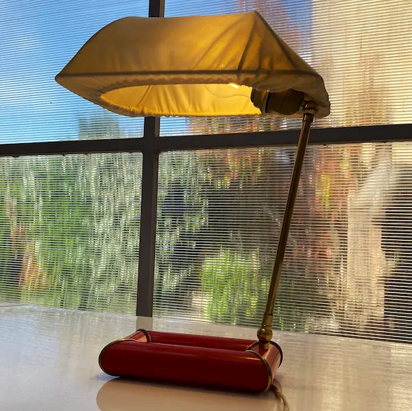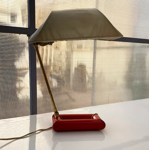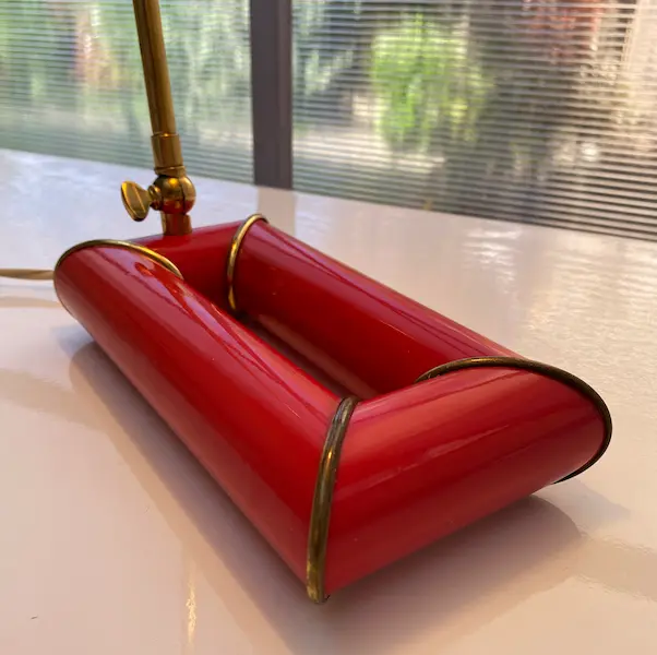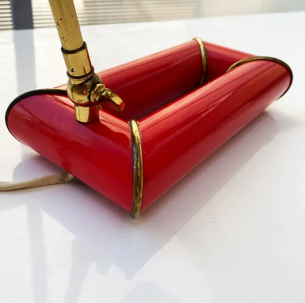 Rare lampe design Kazuhide Takahama pour Sirrah. Pièce vintage iconique des années 60/70, couleur rouge, en laiton et métal.